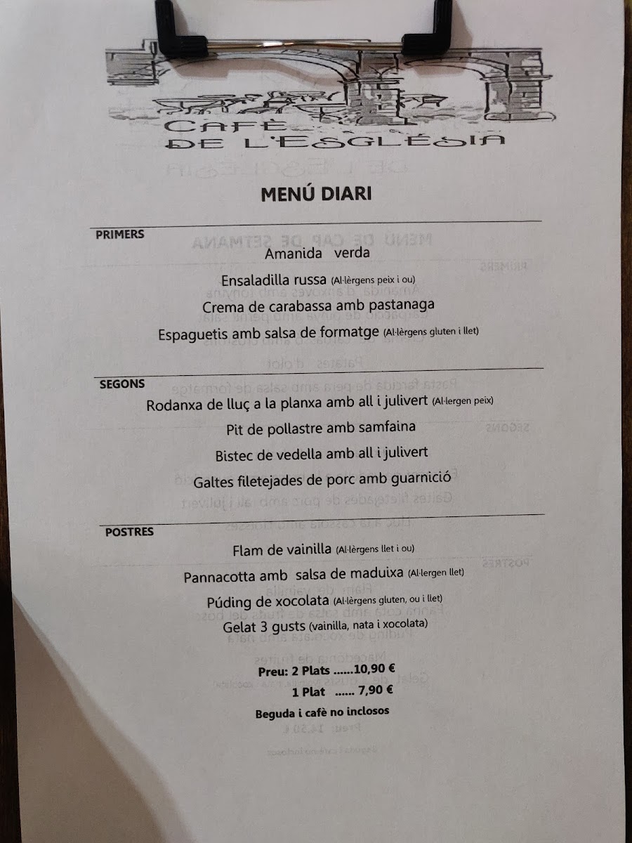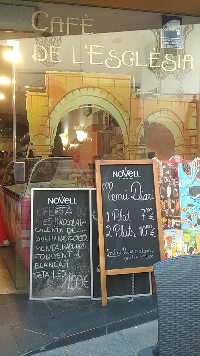El Cafè de l'Església, nestled in the heart of Torelló on Carrer Mossèn Parassols, offers a genuine Catalan cafeteria experience with a focus on quality and tradition. Its menu is simple yet thoughtfully crafted, perfect for a relaxed breakfast or a hearty Sunday lunch. Guests praise their fresh coffee with milk paired with wholesome vegetable sandwiches, reflecting a balance of comfort and nutrition. For larger groups, the Sunday menu shines with meticulously prepared dishes like the flavorful fideuà, showcasing local culinary finesse.